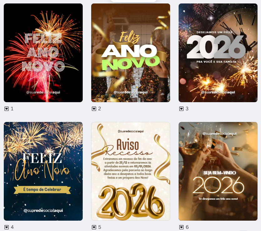Transforme seu feed com templates incríveis para Natal e Ano Novo e atraia clientes.